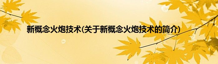 新概念火炮技术(关于新概念火炮技术的简介)