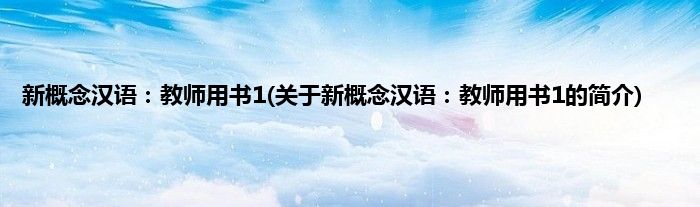 本文关于新概念汉语:教师用书1的简介就讲解完毕,希望对大家有所帮助。