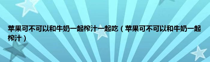 大家好,小科来为大家解答以上问题。苹果可不可以和牛奶一起榨汁一起吃,苹果可不可以和牛奶一起榨汁很多人还不知道,现在让我们一起来看看吧!