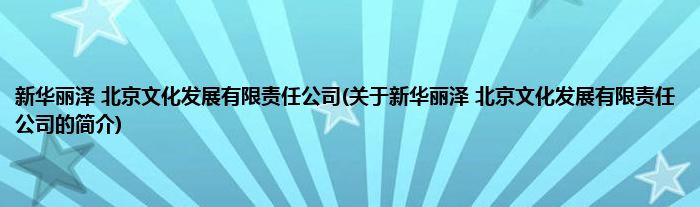 本文关于新华丽泽 北京文化发展有限责任公司的简介就讲解完毕,希望对大家有所帮助。