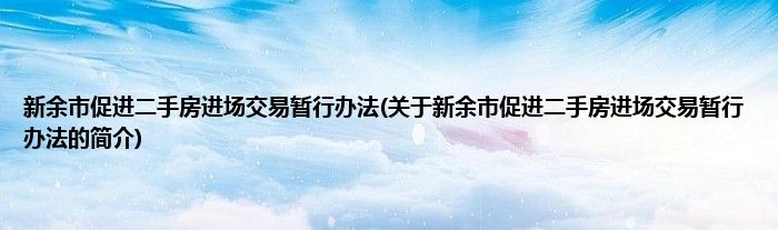 本文关于新余市促进二手房进场交易暂行办法的简介就讲解完毕,希望对大家有所帮助。