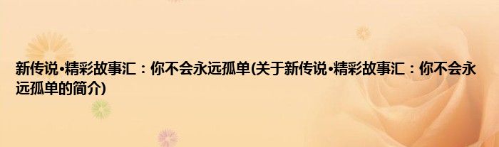 本文关于新传说·精彩故事汇:你不会永远孤单的简介就讲解完毕,希望对大家有所帮助。