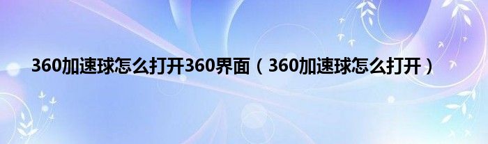 大家好,精选小编来为大家解答以上问题。360加速球怎么打开360界面,360加速球怎么打开很多人还不知道,现在让我们一起来看看吧!