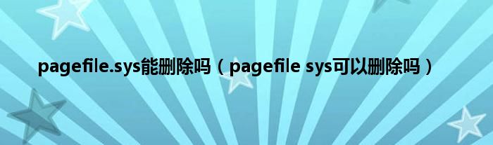 大家好,精选小编来为大家解答以上问题。pagefile.sys能删除吗,pagefile sys可以删除吗很多人还不知道,现在让我们一起来看看吧!