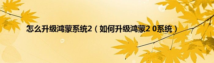 怎么升级鸿蒙系统2(如何升级鸿蒙2 0系统)