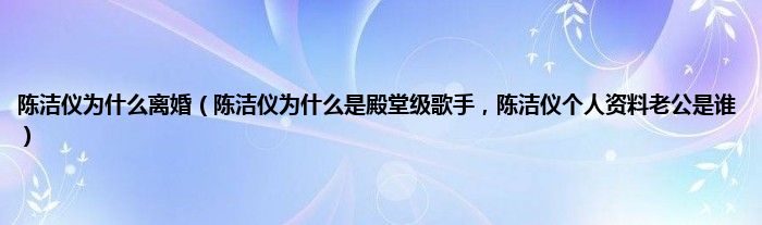 大家好,小常来为大家解答以上问题。陈洁仪为什么离婚,陈洁仪为什么是殿堂级歌手,陈洁仪个人资料老公是谁很多人还不知道,现在让我们一起来看看吧!