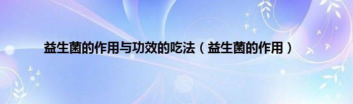 大家好,小科来为大家解答以上问题。益生菌的作用与功效的吃法,益生菌的作用很多人还不知道,现在让我们一起来看看吧!