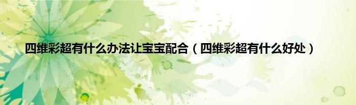 大家好,小科来为大家解答以上问题。四维彩超有什么办法让宝宝配合,四维彩超有什么好处很多人还不知道,现在让我们一起来看看吧!