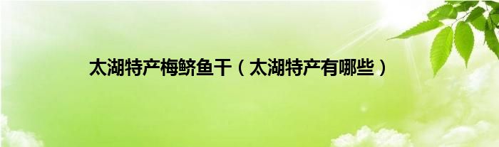 一、 太湖特产有哪些