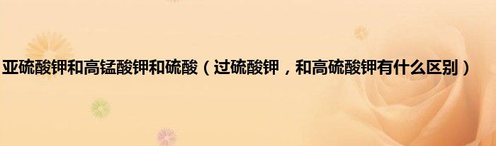 大家好,小常来为大家解答以上问题。亚硫酸钾和高锰酸钾和硫酸,过硫酸钾,和高硫酸钾有什么区别很多人还不知道,现在让我们一起来看看吧!