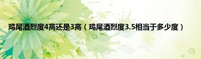 鸡尾酒强度3.5相当于25度。例如,3.5的强度不被认为是鸡尾酒酒,其强度不太高。然而,它被认为是一种酒精含量相对较高的葡萄酒。所以一定要根据自己的酒量喝强度3.5的酒。