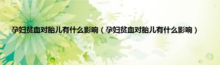 大家好,小科来为大家解答以上问题。孕妇贫血对胎儿有什么影响,孕妇贫血对胎儿有什么影响很多人还不知道,现在让我们一起来看看吧!