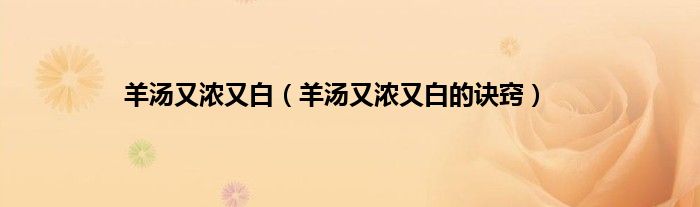 大家好,小科来为大家解答以上问题。羊汤又浓又白,羊汤又浓又白的诀窍很多人还不知道,现在让我们一起来看看吧!