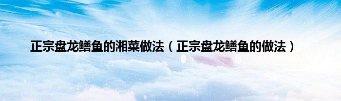 正宗盘龙鳝鱼的湘菜做法(正宗盘龙鳝鱼的做法)