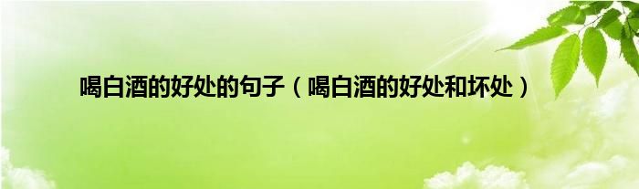 大家好,小科来为大家解答以上问题。喝白酒的好处的句子,喝白酒的好处和坏处很多人还不知道,现在让我们一起来看看吧!