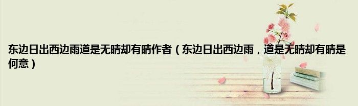 大家好,小常来为大家解答以上问题。东边日出西边雨道是无晴却有晴作者,东边日出西边雨,道是无晴却有晴是何意很多人还不知道,现在让我们一起来看看吧!