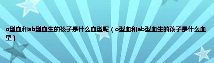 大家好,小科来为大家解答以上问题。o型血和ab型血生的孩子是什么血型呢,o型血和ab型血生的孩子是什么血型很多人还不知道,现在让我们一起来看看吧!