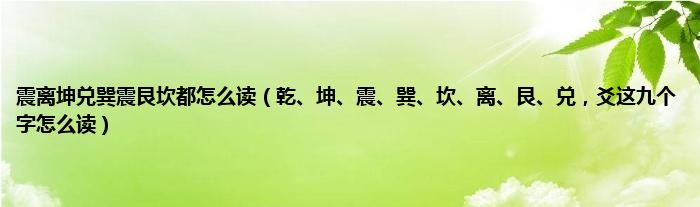 大家好,小常来为大家解答以上问题。震离坤兑巽震艮坎都怎么读,乾、坤、震、巽、坎、离、艮、兑,爻这九个字怎么读很多人还不知道,现在让我们一起来看看吧!