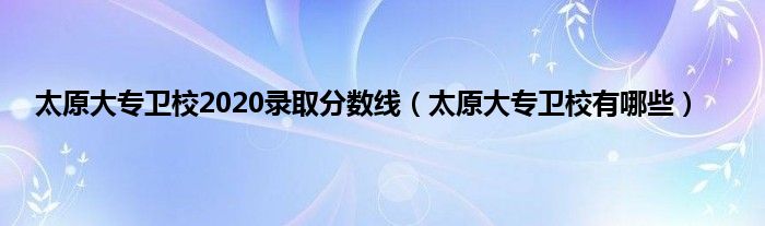大家好,小常来为大家解答以上问题。太原大专卫校2020录取分数线,太原大专卫校有哪些很多人还不知道,现在让我们一起来看看吧!