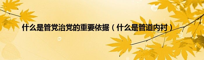 大家好,小常来为大家解答以上问题。什么是管党治党的重要依据,什么是管道内衬很多人还不知道,现在让我们一起来看看吧!