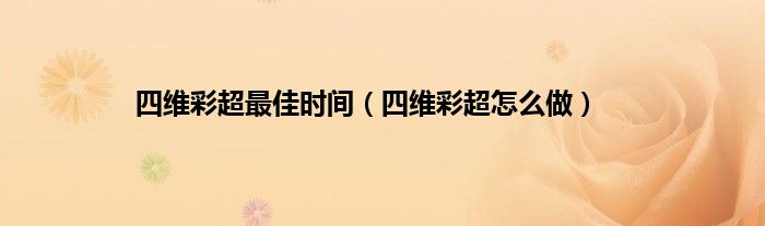最佳答案大家好,小科来为大家解答以上问题。四维彩超最佳时间,四维彩超怎么做很多人还不知道,现在让我们一起来看看吧!一、四维彩超怎么做 四维彩超检查最好在孕妇怀孕24周左右的时候做。这个时候宝宝各方面基本都发育好了。做四维彩超检查可以有效的检查宝宝的发育畸形。 四维彩超在检查胎儿时可以实现...