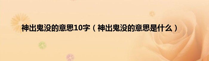 大家好,小常来为大家解答以上问题。神出鬼没的意思10字,神出鬼没的意思是什么很多人还不知道,现在让我们一起来看看吧!