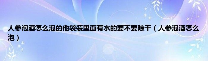 大家好,小常来为大家解答以上问题。人参泡酒怎么泡的他袋装里面有水的要不要晾干,人参泡酒怎么泡很多人还不知道,现在让我们一起来看看吧!