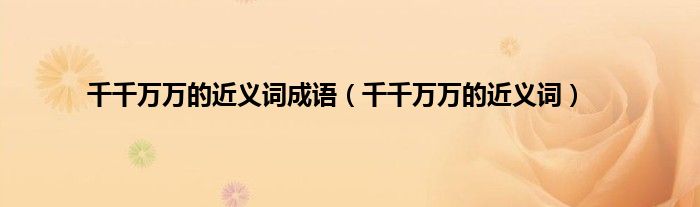 大家好,小常来为大家解答以上问题。千千万万的近义词成语,千千万万的近义词很多人还不知道,现在让我们一起来看看吧!
