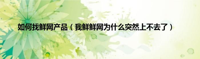 如何找鲜网产品(我鲜鲜网为什么突然上不去了)