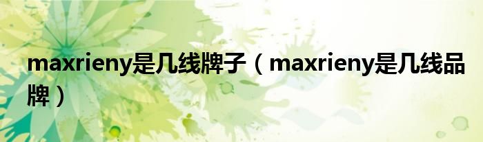 大家好,小科来为大家解答以上问题。maxrieny是几线牌子,maxrieny是几线品牌很多人还不知道,现在让我们一起来看看吧!