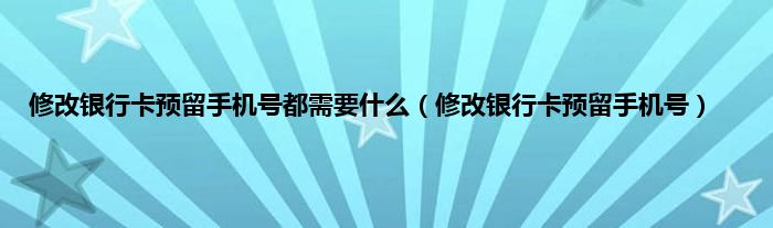 大家好,小常来为大家解答以上问题。修改银行卡预留手机号都需要什么,修改银行卡预留手机号很多人还不知道,现在让我们一起来看看吧!