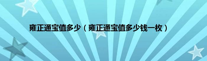大家好,小常来为大家解答以上问题。雍正通宝值多少,雍正通宝值多少钱一枚很多人还不知道,现在让我们一起来看看吧!