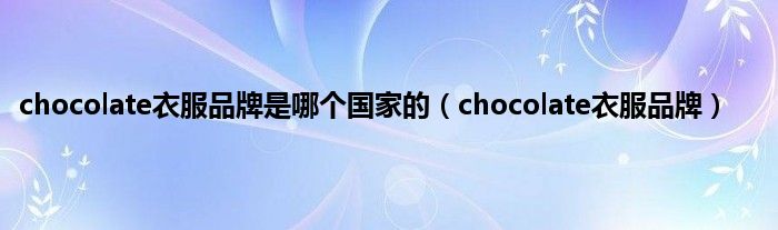 大家好,小科来为大家解答以上问题。chocolate衣服品牌是哪个国家的,chocolate衣服品牌很多人还不知道,现在让我们一起来看看吧!