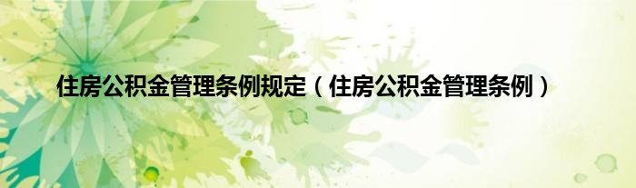 2、《住房公积金管理条例》是国务院为了加强对住房公积金的管理,维护住房公积金所有者的合法权益,促进城镇住房建设,提高城镇居民的居住水平而制定的条例,适用于中华人民共和国境内住房公积金的缴存、提取、使用、管理和监督。