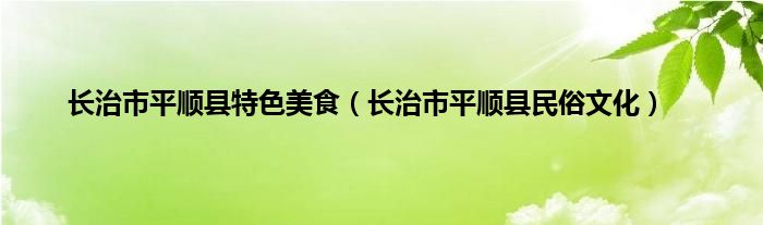 大家好,小常来为大家解答以上问题。长治市平顺县特色美食,长治市平顺县民俗文化很多人还不知道,现在让我们一起来看看吧!