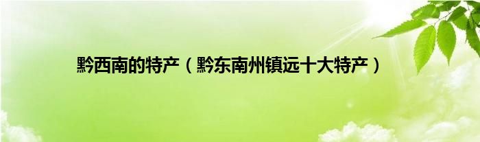 大家好,小常来为大家解答以上问题。黔西南的特产,黔东南州镇远十大特产很多人还不知道,现在让我们一起来看看吧!