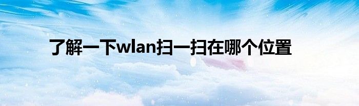 相信通过了解一下wlan扫一扫在哪个位置这篇文章能帮到你,在和好朋友分享的时候,也欢迎感兴趣小伙伴们一起来探讨。