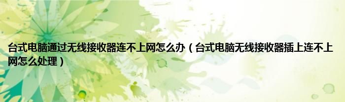 大家好,小常来为大家解答以上问题。台式电脑通过无线接收器连不上网怎么办,台式电脑无线接收器插上连不上网怎么处理很多人还不知道,现在让我们一起来看看吧!