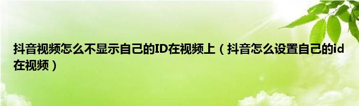大家好,小常来为大家解答以上问题。抖音视频怎么不显示自己的ID在视频上,抖音怎么设置自己的id在视频很多人还不知道,现在让我们一起来看看吧!
