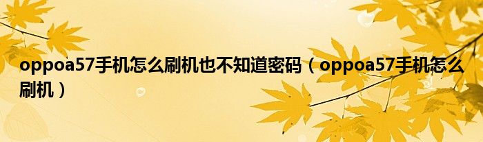 大家好,小常来为大家解答以上问题。oppoa57手机怎么刷机也不知道密码,oppoa57手机怎么刷机很多人还不知道,现在让我们一起来看看吧!