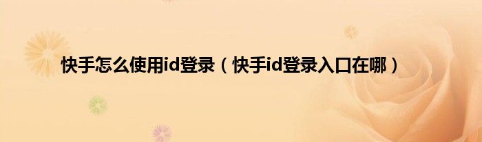 大家好,小常来为大家解答以上问题。快手怎么使用id登录,快手id登录入口在哪很多人还不知道,现在让我们一起来看看吧!