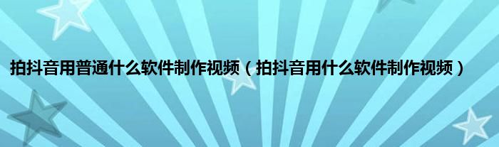 大家好,小常来为大家解答以上问题。拍抖音用普通什么软件制作视频,拍抖音用什么软件制作视频很多人还不知道,现在让我们一起来看看吧!