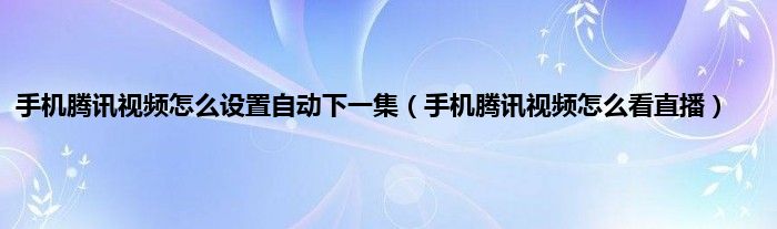 大家好,小常来为大家解答以上问题。手机腾讯视频怎么设置自动下一集,手机腾讯视频怎么看直播很多人还不知道,现在让我们一起来看看吧!