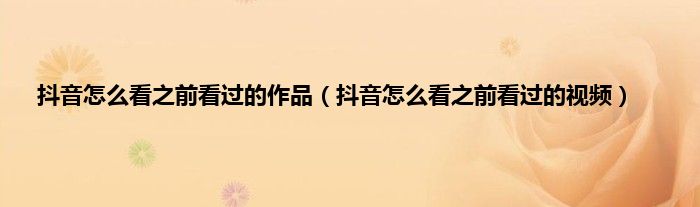 抖音怎么看之前看过的作品(抖音怎么看之前看过的视频)