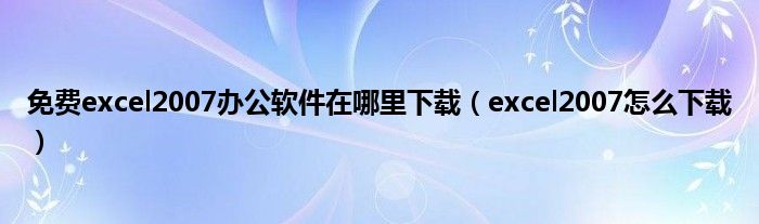 大家好,小常来为大家解答以上问题。免费excel2007办公软件在哪里下载,excel2007怎么下载很多人还不知道,现在让我们一起来看看吧!