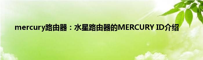 现在大家使用手机的频率越来越频繁,手机也为我们提供了许多的便利,今天小编也来说一下这个mercury路由器:水星路由器的MERCURY ID介绍相关的文章,这个操作其实不复杂,接下来就给大家介绍一下mercury路由器:水星路由器的MERCURY ID介绍,一起来看看吧: