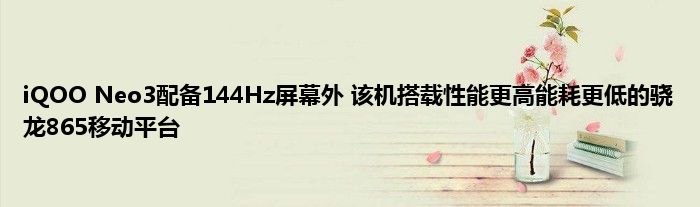 今天来聊聊一篇关于iQOO Neo3配备144Hz屏幕外,该机搭载性能更高能耗更低的骁龙865移动平台的文章,现在就为大家来简单介绍下iQOO Neo3配备144Hz屏幕外,该机搭载性能更高能耗更低的骁龙865移动平台,希望对各位小伙伴们有所帮助。