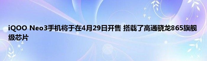 相信通过iQOO Neo3手机将于在4月29日开售 搭载了高通骁龙865旗舰级芯片这篇文章能帮到你,在和好朋友分享的时候,也欢迎感兴趣小伙伴们一起来探讨。