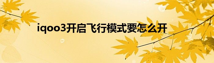 最近小编发现有诸多的小伙伴们对于iqoo3怎么开启飞行模式都颇为感兴趣的,大家也都想要及时了解到iqoo3怎么开启飞行模式相关信息,那么小编今天就来为大家梳理下具体的关于这个问题的一些消息吧。