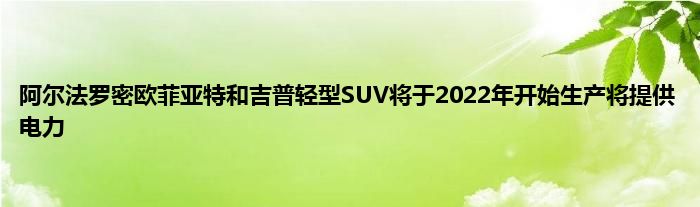 阿尔法·罗密欧,菲亚特和吉普轻型SUV将于2022年开始生产,将提供电力